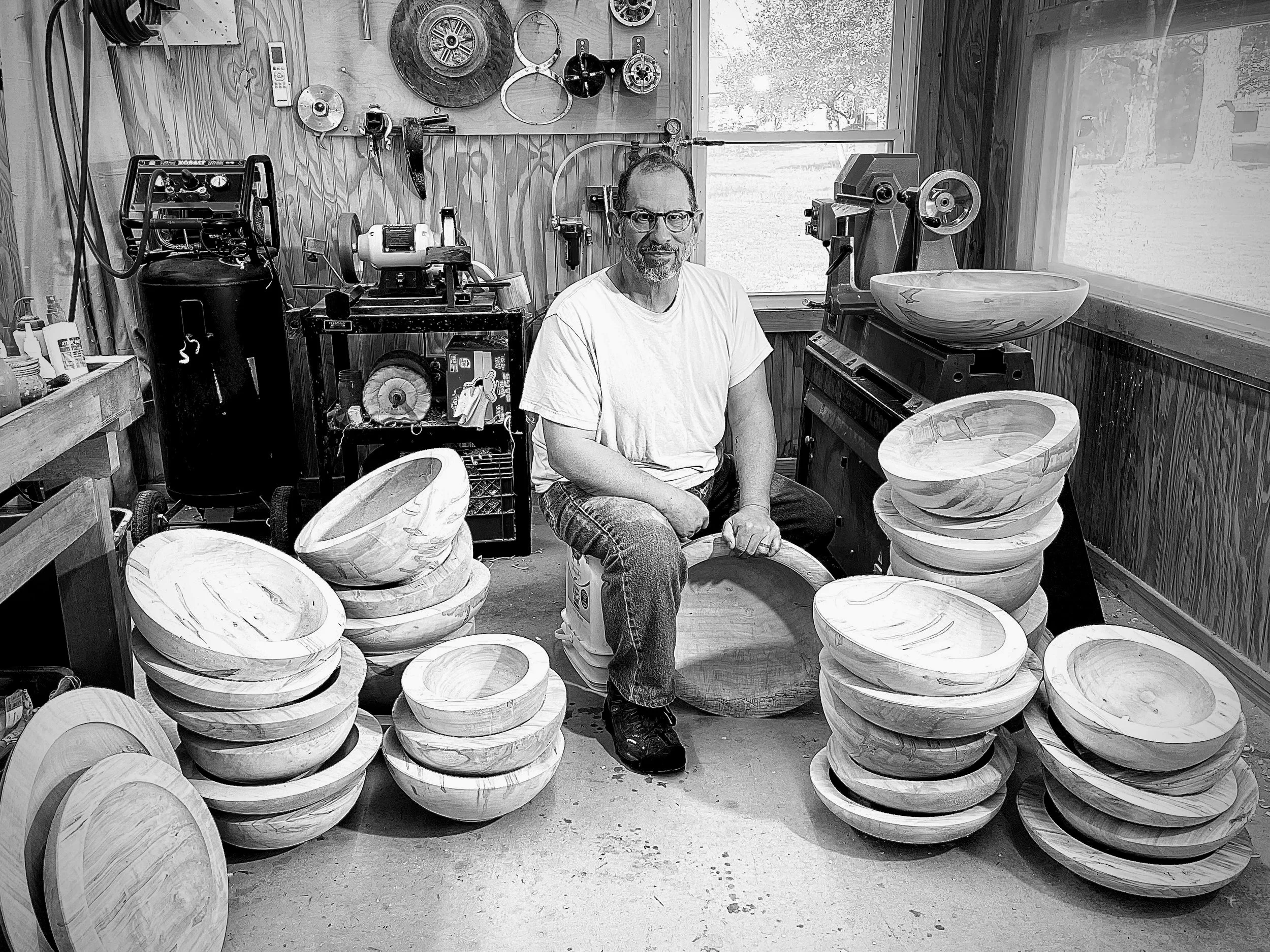 Woodturning found me in 2000. After a move to a new town, it seems my soul was craving a new challenge. A new way to use my hands, and a new way to say the things I needed to say. Looking through some woodworking magazines, I came across an article about the late David Ellsworth. A man that used the lathe in ways that no one had done before. His mastery of technique and his command of form and balance was all I needed to go buy a lathe and start making a mess. I worked on my own for a while. Relying mostly on books and video tapes to guide me. Then I found a shop where I could take a lesson and let’s just say, the planets aligned and I met one amazing teacher, and to this day, my dearest friend. I watched as he put the tool to wood and I could see he was a master at the things I had been struggling to understand. Over the next few years he answered every call and spent time with me in the shop and in the woods, helping me to understand that respect for the wood is one of the most important tools we have as a craftsman.